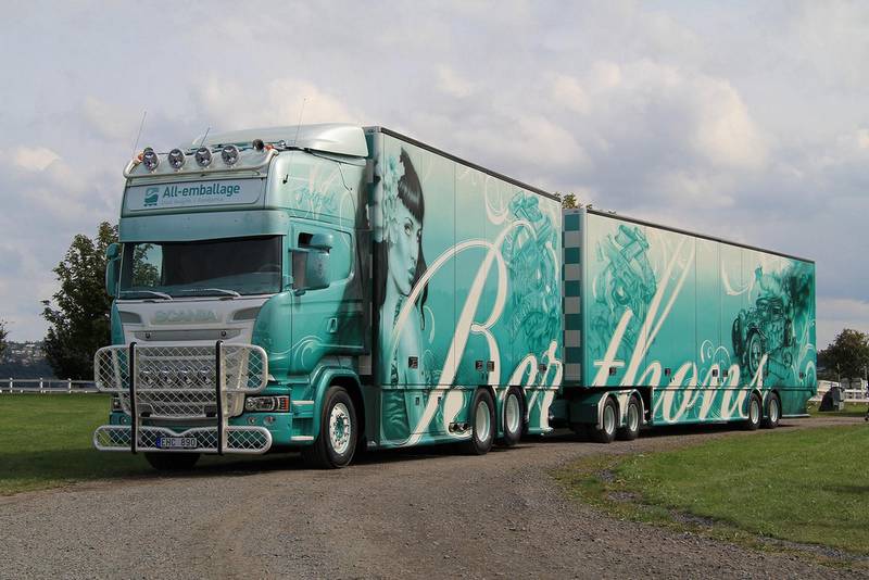 Автопоезд из Швеции состоит из трёхосного тягача Scania R560, получившего собственное имя Berthons Hot Rod, и четырёхосного полуприцепа, оформленных в гламурно-романтическом стиле. Этот гигант, как сообщает ABW. BY, стал хитом, настоящим героем грузовых автофестивалей: в июле 560-сильный грузовик выиграл титул Best in Show на голландском Truckstar Festival, в августе — на финском Power Truck Show.